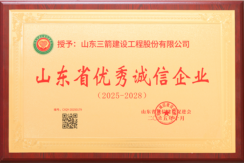 近日,山东省诚信建设促进会公布首届建筑业“山东省优秀诚信企业暨优秀诚信企业家”评选结果,山东三箭建设工程股份有限公司荣获“山东省优秀诚信企业”称号,三箭集团(股份)党委书记、董事长孙冠军同志获评“山东省优秀诚信企业家”称号。